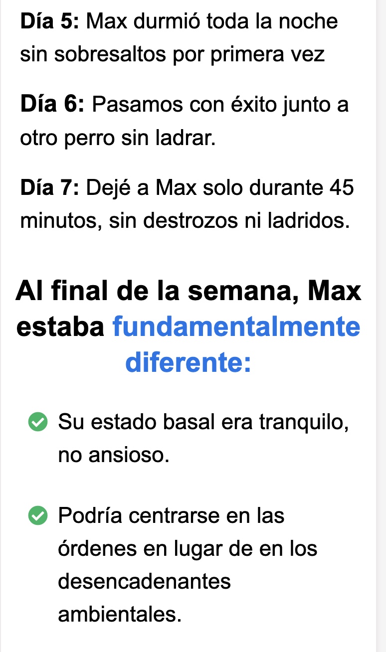 Es más que un entrenamiento: es un sistema integral paso a paso diseñado para que tu perro pase de la ansiedad al equilibrio en menos de 7 días.
